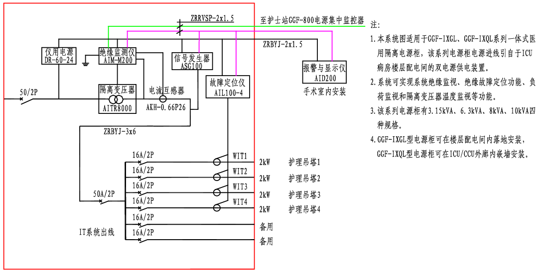GGF-IXGL、IXQL醫用隔離電源柜系統接線圖