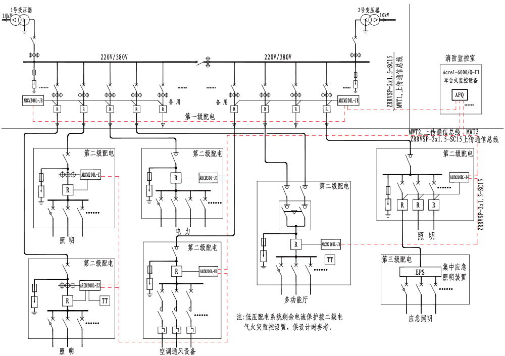低壓配電系統二級電氣火災監控設置方案綜合圖
