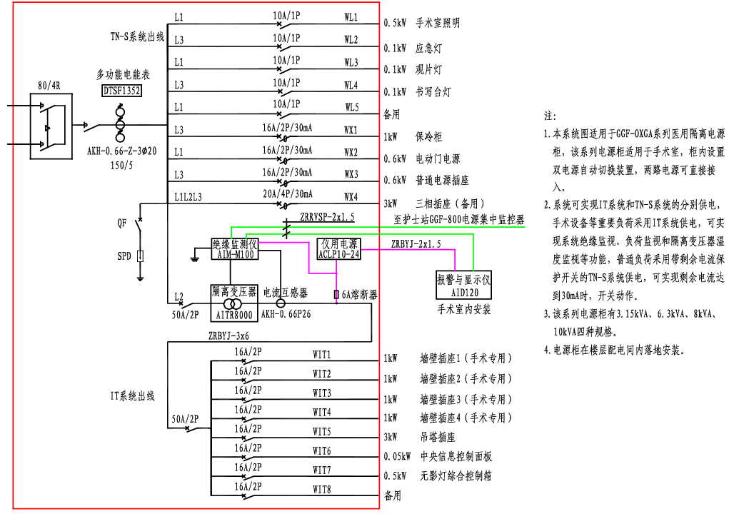 GGF-OXGA醫用隔離電源柜系統接線圖