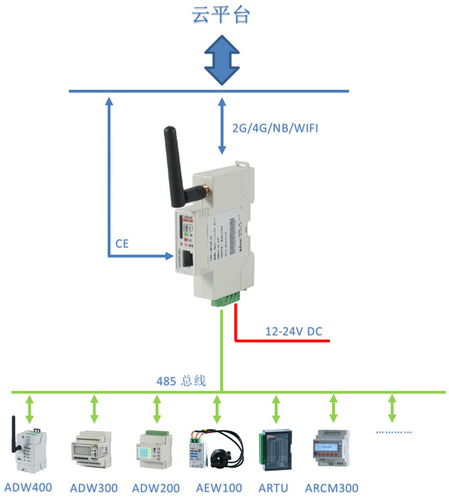 產品簡介:支持串口MODBUS RTU協議的數據采集,并通過安科瑞平臺協議與安科瑞服務器通訊。