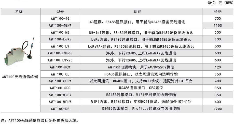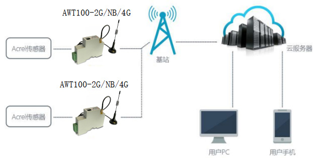 注:①AWT100-2G/NB/4G無線通信終端能通過安科瑞平臺協議與安科瑞服務器通訊。