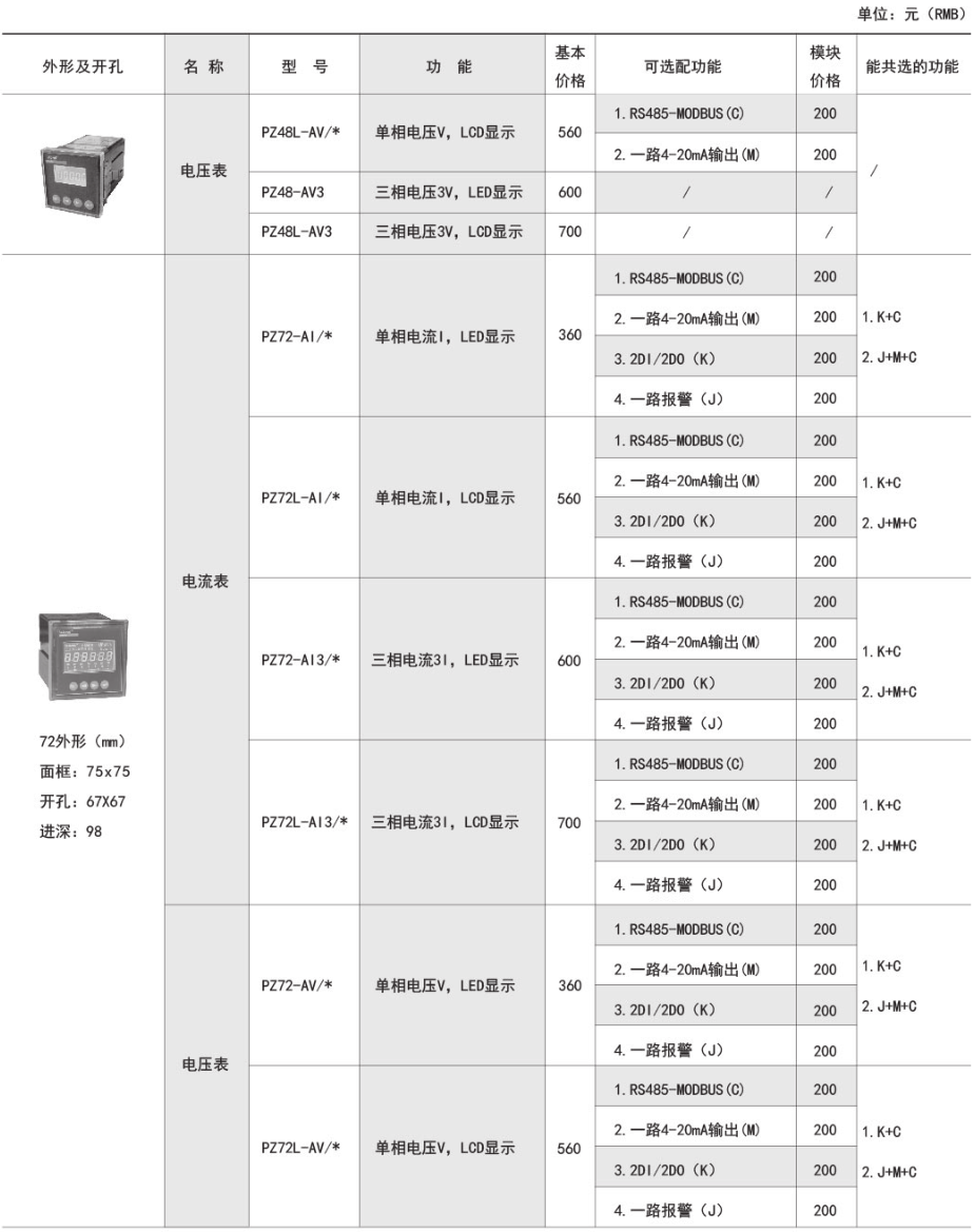 產品簡介:該系列儀表采用交流采樣技術,能分別測量電網中的電流、電壓、功率、功率因數和電能等參數??蓭S485通訊接口、模擬量數據轉換、開關量輸入/輸出等功能,實現電力參數、電氣元件工作狀態的遠程傳輸,便于后臺監控系統集中檢測。