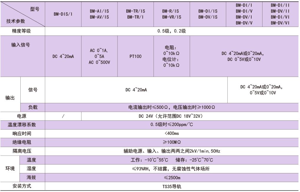 BM系列模擬信號隔離器可以對電流、電壓等電量參數或溫度、電阻等非電量參數進行高速精確測量,經隔離轉換成標準的模擬信號輸出。既可直接與指針表、數顯表相接,也可以與自控儀表(如PLC)、各種A/D轉換器以及計算機系統配接。