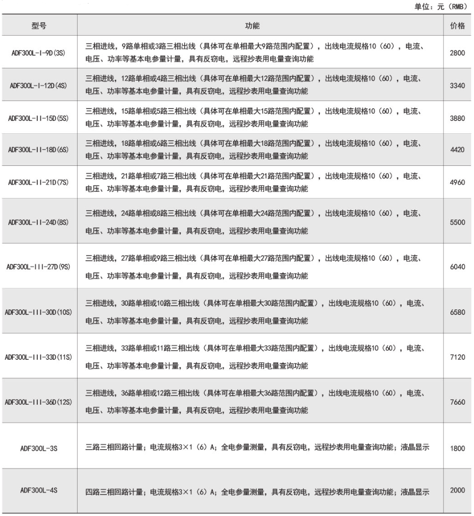產品簡介:ADF300系列多用戶計量箱是一種電子式智能化多用戶電能表,設計采用一戶一計量方案,具有計量準確度高、戶與戶之間計量互不干擾、集中安裝、集中管理優勢。可以同時計量12戶三相、36戶單相、單/三相回路混合用電狀況。
