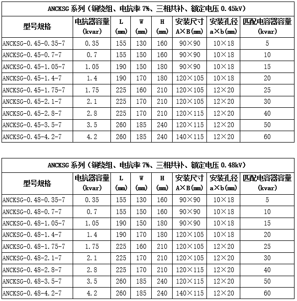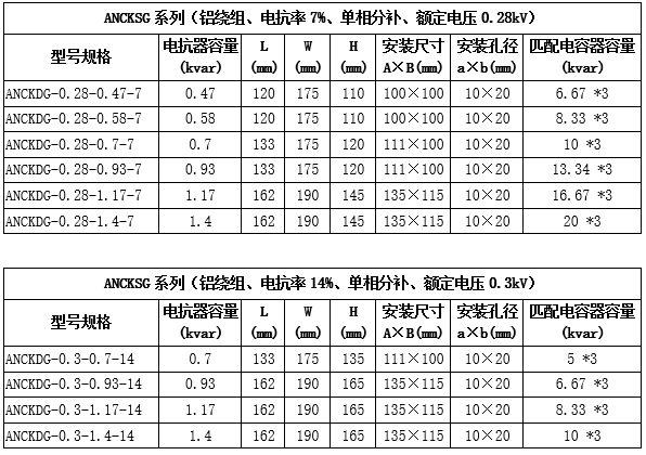 技術(shù)要求:適用電容器5kVAR;7%電抗率;銅芯