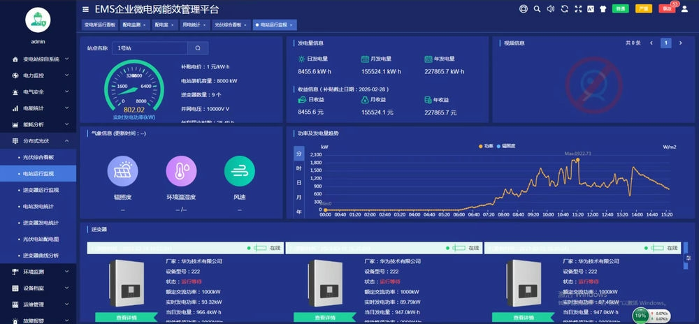采用EMS能源管理解決方案,采集電表和逆變器的電壓電流功率電能等數(shù)據(jù),形成電能一次系統(tǒng)圖,實(shí)現(xiàn)用電的智能化管理。在每一個(gè)配電間還加裝有煙感、水浸、門磁等來監(jiān)測(cè)配電間整體環(huán)境狀態(tài)保證用電的安全性。在配電環(huán)節(jié)加裝有我們公司的電能質(zhì)量和濾波裝置更好的保證了用電的可靠性。