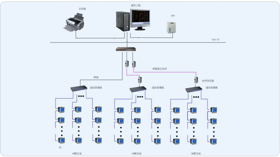 本項目的電力監(jiān)控系統(tǒng),可以實現(xiàn)對高鐵內(nèi)低壓配電回路的實時監(jiān)控,有利于電能管理。另一方面,電力監(jiān)控系統(tǒng)不僅能夠準確的表示出回路的用電狀況,它還具備網(wǎng)絡(luò)通訊等功能,能夠與計算機、串口服務(wù)器等設(shè)備進行組合,及時的顯示高鐵內(nèi)各個配電回路的運作狀態(tài),當(dāng)電力系統(tǒng)的負載越標時,電力監(jiān)控系統(tǒng)能夠迅速報警,發(fā)出語音提示。另外,電力監(jiān)控系統(tǒng)還能夠生成報表、曲線圖等統(tǒng)計信息,便于有關(guān)人員分析樓內(nèi)各部分的用電狀況,從而保證人員的生命安全,提高商業(yè)人員的工作效率。