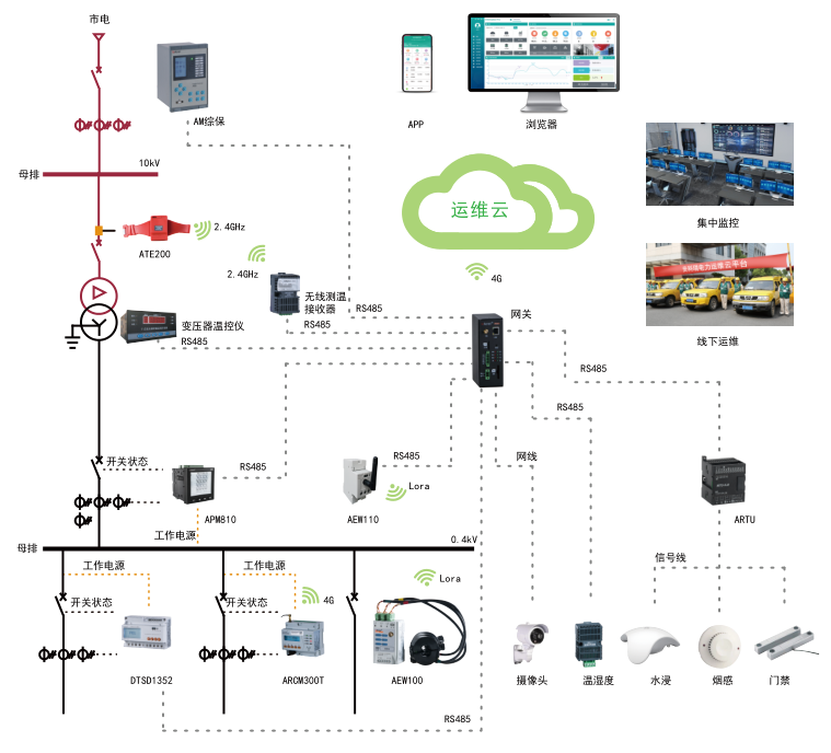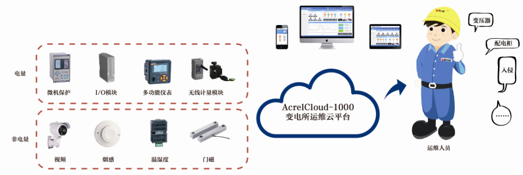 AcrelCloud-1000變電所運維云平臺基于互聯網+、大數據、移動通訊等技術開發的云端管理平臺,滿足用戶或運維公司監測眾多變電所回路運行狀態和參數、室內環境溫濕度、電纜及母線運行溫度、現場設備或環境視頻場景等需求,實現數據一個中心,集中存儲、統一管理,方便使用,支持具有權限的用戶通過電腦、手機、PAD等各類終端鏈接訪問、接收報警,并完成有關設備日常和定期巡檢和派單等管理工作。