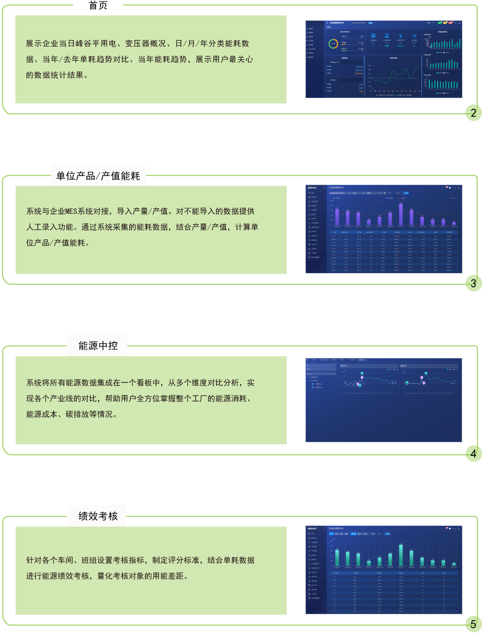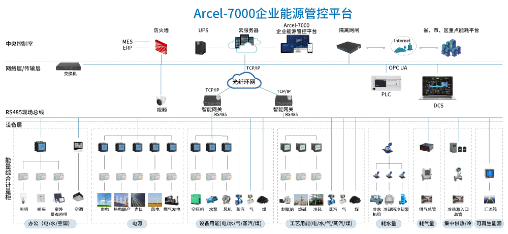 Acrel-7000企業(yè)能源管控系統(tǒng)采用自動化、信息化技術(shù)和集中管理模式,對企業(yè)的生產(chǎn)、輸配和消耗環(huán)節(jié)實(shí)行的動態(tài)監(jiān)控和數(shù)據(jù)化管理,監(jiān)測企業(yè)電、水、燃?xì)?、蒸汽及壓縮空氣等各類能源的消耗情況,通過數(shù)據(jù)分析、挖掘,幫助企業(yè)針對各種能源需求及實(shí)際用能情況、產(chǎn)品能源單耗、工序能耗、重點(diǎn)設(shè)備用能等進(jìn)行能耗統(tǒng)計(jì)、同環(huán)比分析、能源成本分析、用能預(yù)測、碳排分析,為企業(yè)加強(qiáng)能源管理,提高能源利用效率、挖掘節(jié)能潛力、為節(jié)能評估、能源審計(jì)提供基礎(chǔ)數(shù)據(jù)。