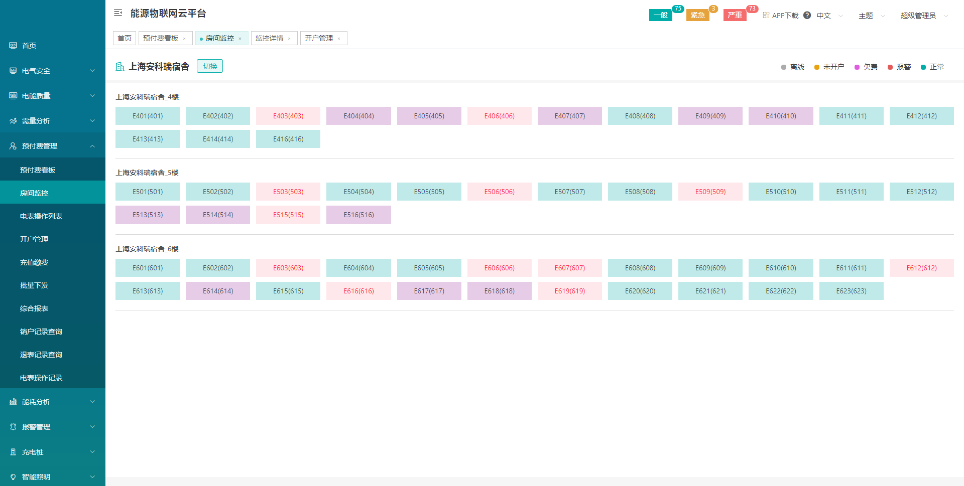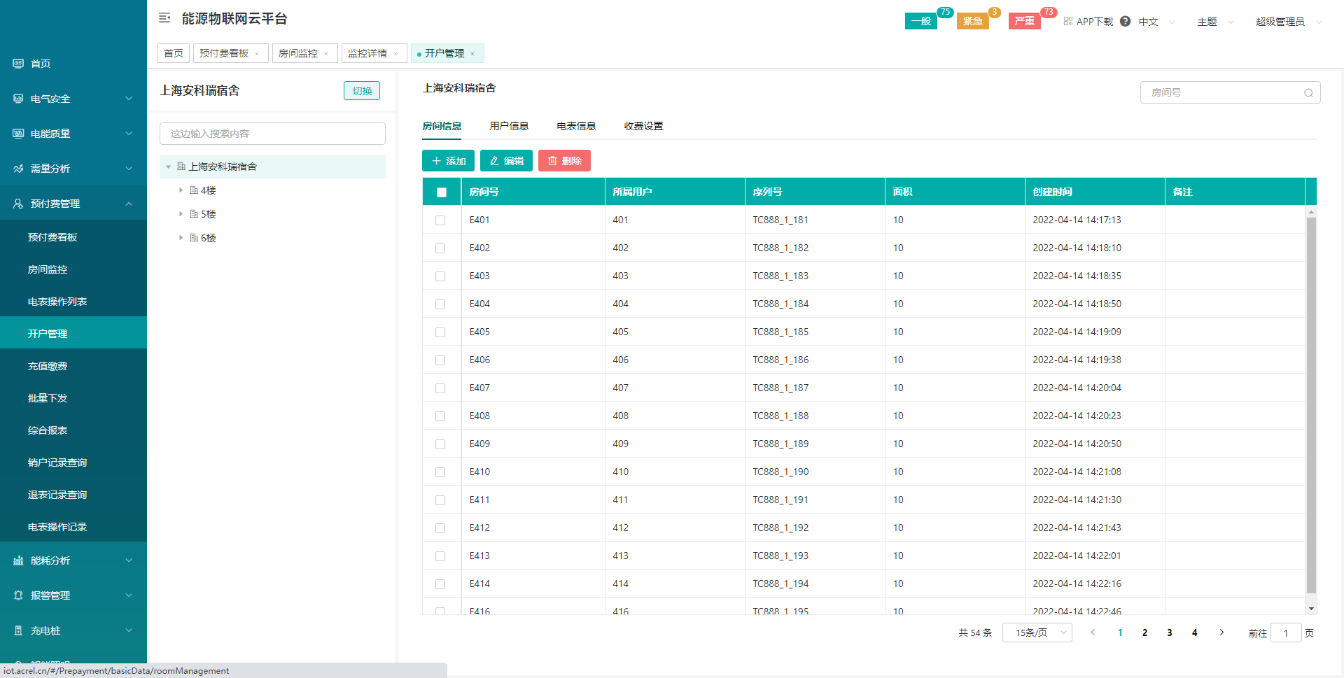 系統(tǒng)針對(duì)商鋪開戶不僅支持一戶一表,也支持一戶掛多表的需要;同時(shí)解決了項(xiàng)目改造后新老表切換時(shí),老表金額轉(zhuǎn)入的問(wèn)題;支持峰谷電價(jià);可對(duì)單表設(shè)置功率過(guò)載的閾值,也支持設(shè)置單表金額報(bào)警的兩級(jí)閾值。