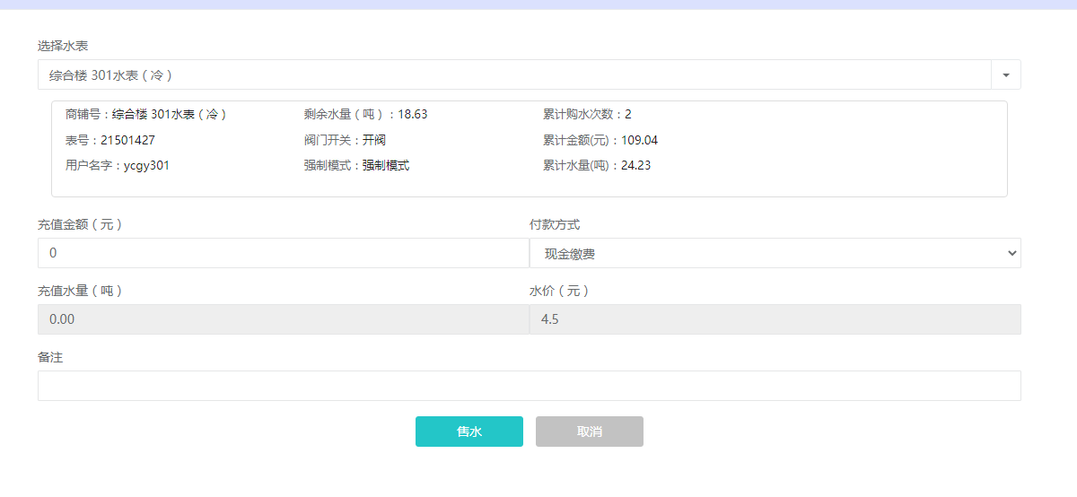 系統(tǒng)同樣支持水表的預(yù)付費(fèi)功能,通過(guò)選購(gòu)我司合作品牌積成、巨靈、青島浪濤等水表,不僅支持普通188和ModBus協(xié)議的水表,也支持NB水表。
