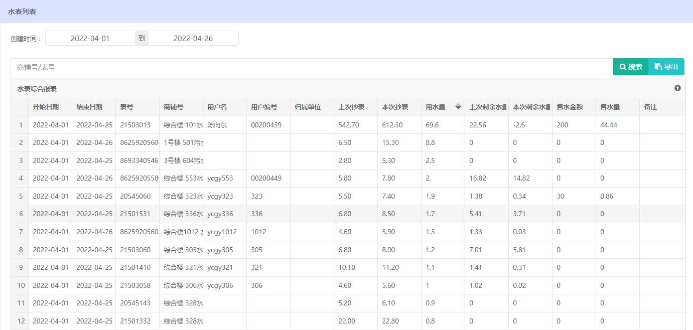 水表也提供多種報(bào)表供用戶查詢統(tǒng)計(jì),包括銷售報(bào)表,綜合用水報(bào)表、水表失聯(lián)報(bào)表、水表告警記錄歷史報(bào)表等。