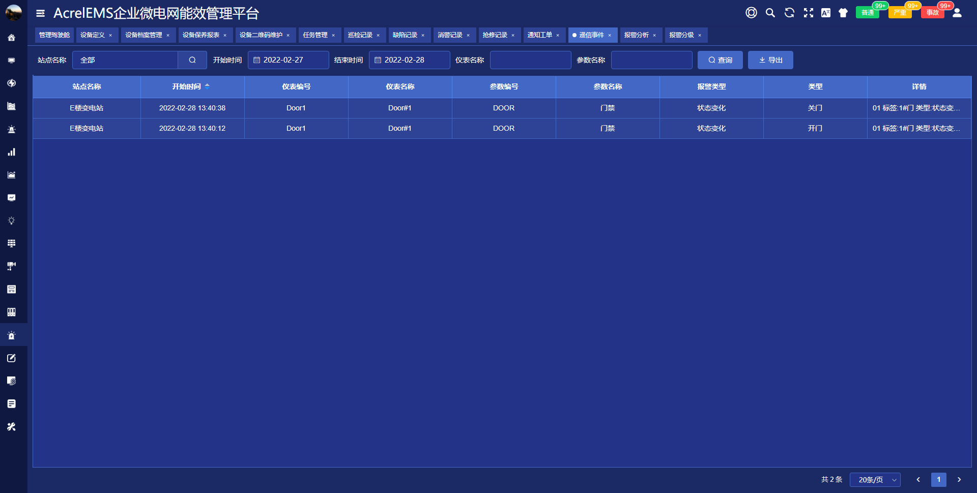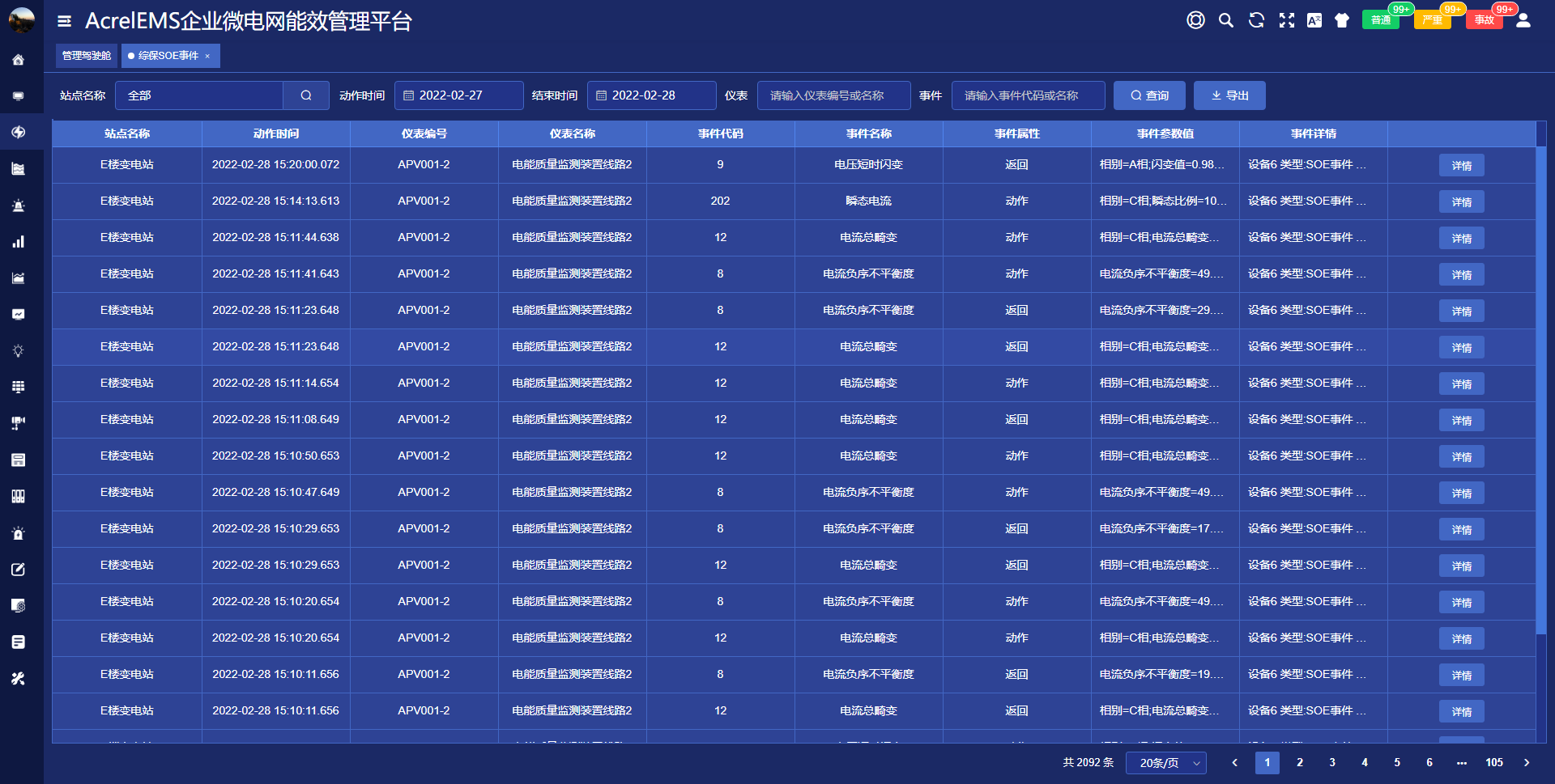 電力監控系統能夠對遙信變位,保護動作、事故跳閘,以及電壓、電流、功率、功率因數越限等事件記錄進行存儲和管理,方便用戶對系統事件和報警進行歷史追溯,查詢統計、事故分析。