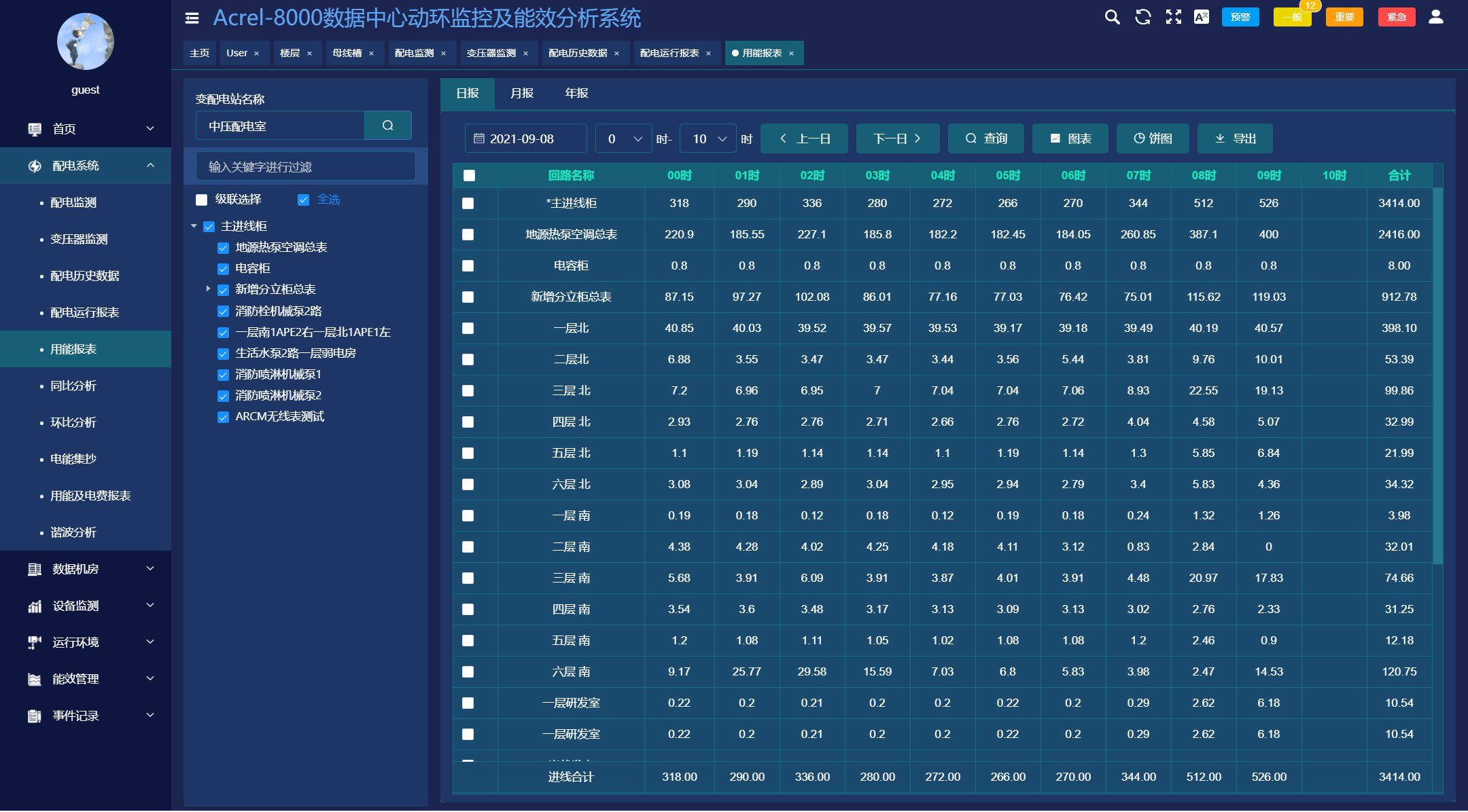 電力監控系統以豐富的報表體支撐量體系的完整性。系統具備定時抄表匯總統計功能,用戶可以自由查詢自系統正常運行以來任意時間段內各配電節點的用電情況,即該節點進線用電量與各分支回路消耗電量的統計分析報表。