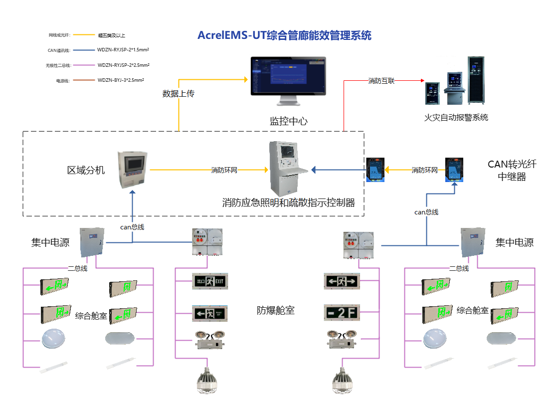該系統配合火災報警控制器的使用,在火災時刻,能夠準確給出安全的疏散路徑指示,快速準確改變消防應急標志燈的指示方向,點亮消防應急照明燈,幫助管廊內的人群選擇逃生疏散路線,指引安全逃生方向,保障運維人員的人身安全,為各類用戶擔心的安全問題解決了后顧之憂。
