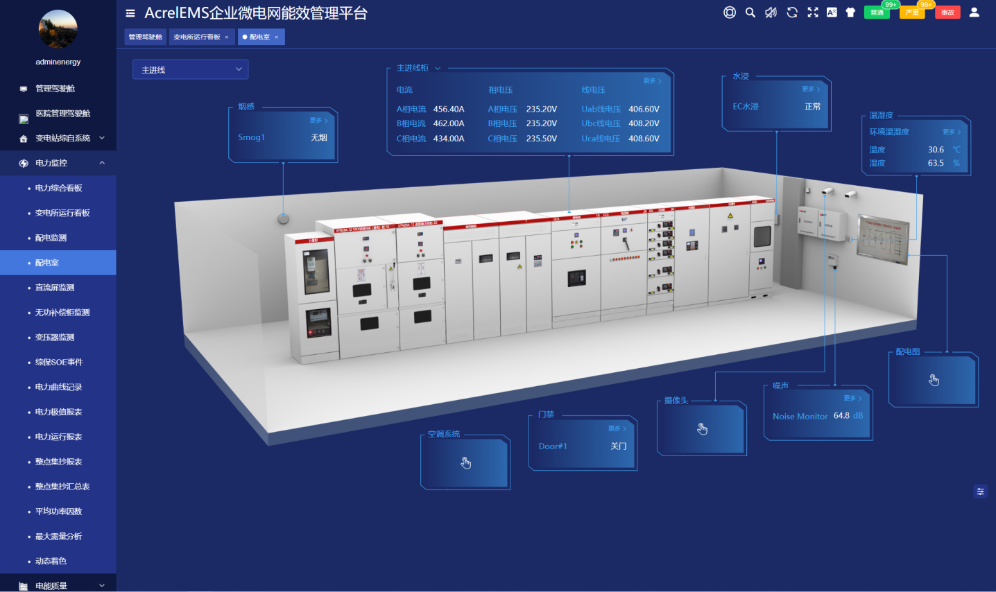 Acrel-2000E配電室綜合監控系統,可實現開關柜運行監控、高壓開關柜帶電顯示、母線及電纜測溫監測、環境溫濕度監測、有害氣體監測、安防監控,可對燈光、風機、除濕機、空調控制等設備進行聯動控制。實現動力環境各數據的檢測與設備控制,優化動力環境,避免運行環境的失控導致配電設備運行故障,保證維護人員安全,延長設備使用壽命,實現配電動力環境的分布式遠程管理。