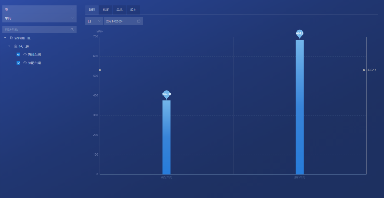 將所有有關能源的能源參數集中在一個看板中,能從多個維度對比分析,實現各個產業線的對比,幫助領導掌控整個工廠的能源消耗,能源成本,標煤排放等的情況。