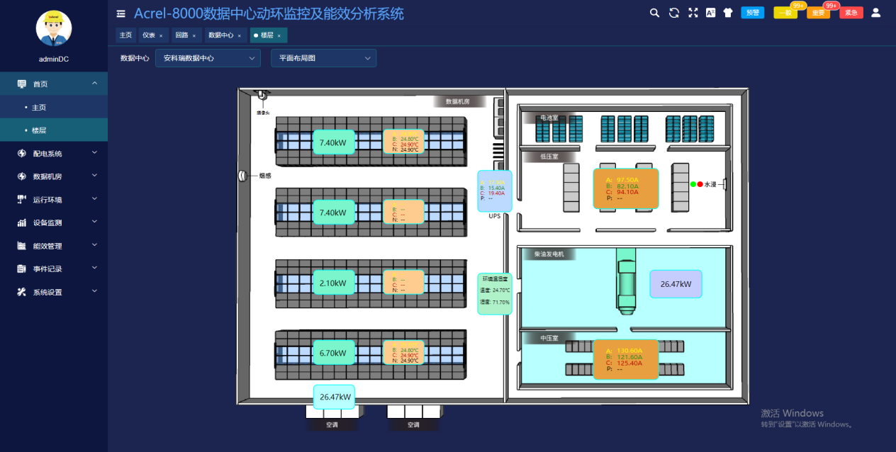 通過Acrel-8000數據中心動環監控系統,實現了對數據中心的門禁狀態、水浸狀態,煙霧狀態,視頻狀態,環境狀態,高低壓配電狀態,設備運行狀態進行實時監測,并進行實時報警,保障數據中心正常運行,避免運行環境的失控導致配電設備運行故障,保證維護人員安全,延長設備使用壽命,減少配電室粗放式管理導致成本過高。同時實現動環監控并對各用能耗能進行能效分析,幫助用戶實現用能效率的優化。