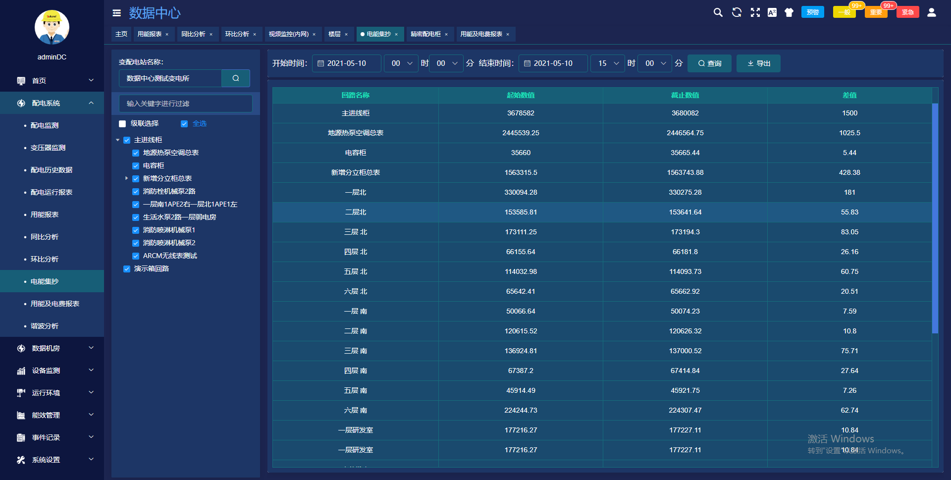 顯示母線槽設備下,所有分支回路的電力參數,并支持歷史數據查詢。