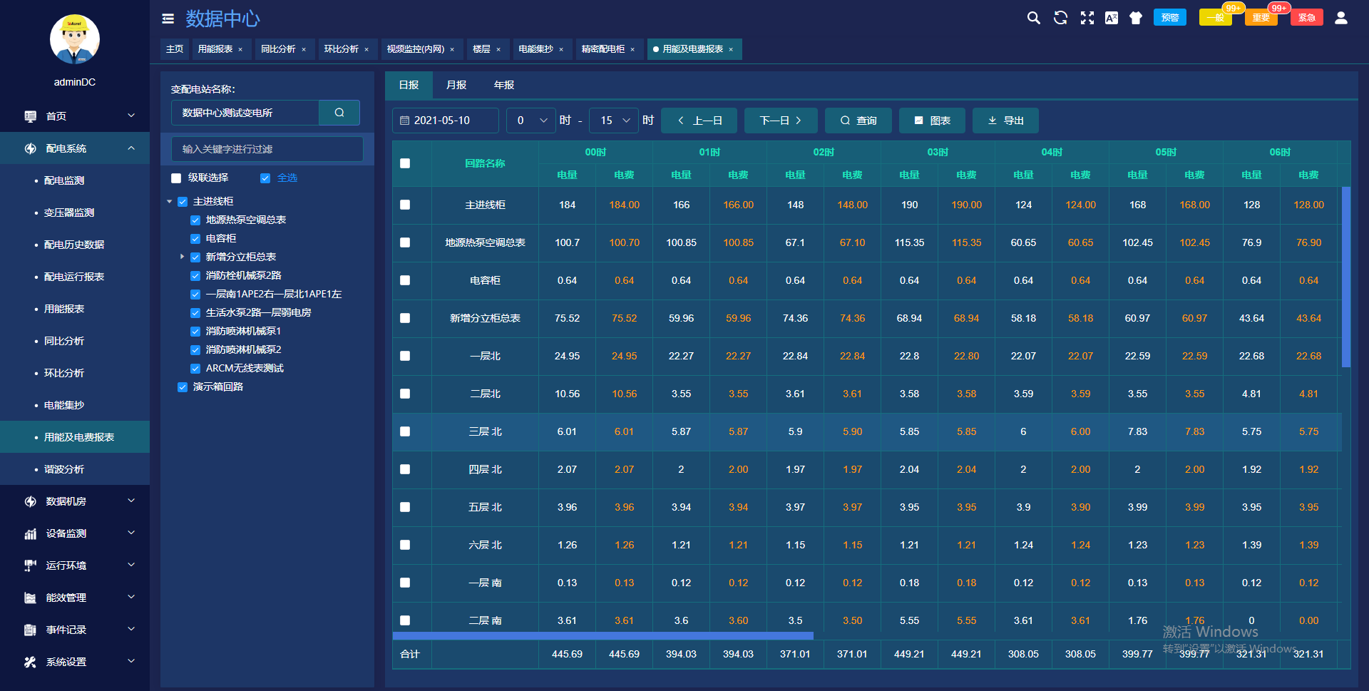 將各個回路,每個時段的用能情況統計到報表中,直觀顯示各日、月、年的用能。并根據設定的電價,計算出電費。